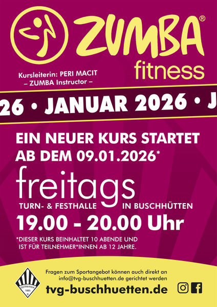 ZUMBA für alle ab 12 Jahre - Neuer Kurs 2026 startet am 09.01.2026